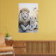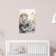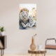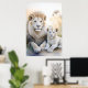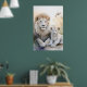 Poster d'un majestueux lion adulte et d'un adorable petit assis à deux pas dans un cadre serein et pastel aux fleurs délicates de l'arrière - plan. Leurs expressions douces et blanches de fourrure et de calme véhiculent un sentiment de chaleur et de lien familial.