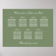 Sage Green 7 Table Mariage Seating Chart Poster, s'il vous plaît personnaliser les noms du couple et les noms des invités ainsi que l'un des autres textes que vous souhaitez personnaliser. Une affiche élégante avec un élégant texte blanc sur un arrière - plan vert sage.