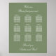 Sage Green 9 Table Mariage Seating Chart Poster, s'il vous plaît personnaliser les noms du couple et les noms des invités ainsi que l'un des autres textes que vous souhaitez personnaliser. Une affiche élégante avec un élégant texte blanc sur un arrière - plan vert sage.
