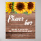 Mariage du bar à fleurs affiche verticale simple et élégante basée sur le style rustique qui utilisait le bois foncé et les tournesols. Utilisez le cadre horizontal et profitez de la fête!