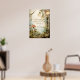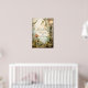 Un sentier forestier éthérée de fleurs et d'arbres est présenté dans cette affiche magique enchantée de mariage à accrocher à votre lieu, avec des arbres, des champignons magiques et des lanternes suspendues.
