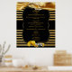 Une luxueuse texture de soie dorée chatoyante drapée par deux anneaux mariages sur un arrière - plan noir dramatique avec une bande de style Déco pour donner au design un look chic et glamour à l'affiche du menu personnaliser