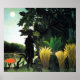 Affiche de Henri Rousseau Snake Charmer. Peinture à l'huile sur toile de 1907. L'un des tableaux les plus captivants de Henri Rousseau, The Snake Charmer, représente un mystérieux flûtiste vêtu d'obscurité et de serpents charmants du feuillage de la jungle. Le charmeur se dresse au bord d'une rivière à côté d'un oiseau rose tandis que les serpents sombres glissent vers le son de la flûte. La lune brille dans le ciel nocturne, et les palmiers se balancent au loin. Un beau cadeau pour les fans Henri Rousseau, primitivisme, post-impressionnisme, peintures dans la jungle et art français.