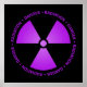 Poster noir avec symbole de rayonnement violet entouré de "Danger - Radiation" en répétant le texte violet.