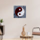 Affiche du symbole Yin yang en rouge, blanc et gris.