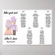 Elégante affiche du tableau des places du marié et du marié, texte modèle pour cinq tables avec nom d'invité.