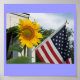 Éclairez une chambre et montrez votre fierté américaine avec cette affiche représentant un tournesol géant et le drapeau américain.
