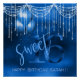 Célébrez n'importe quel événement avec ce modèle design unique avec de belles lampes à cordes et délicats ballons flottants sur un dégradé, arrière - plan aquarelle dans les tons de bleu saphir riche. Le texte "Sweet sixteen" attrayant est facultatif et peut être supprimé pour utiliser le modèle à d'autres occasions. Utilisez le modèle fourni pour ajouter du texte à vos besoins. Recherchez ID473 pour voir d'autres produits et options de couleur pour cette conception.