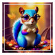 Poster Écureuil bleu mignon avec lunettes