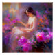 Une peinture générée par l'IA d'une belle femme entourée de fleurs roses et violettes