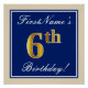 Poster Elégant, Bleu, Faux Or 6e anniversaire; Nom person