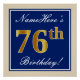 Poster Elégant, Bleu, Faux Or 76ème Anniversaire + Nom