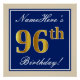 Poster Elégant, Bleu, Faux Or 96ème Anniversaire + Nom