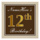 Poster Elégant, Brown, Faux Gold 12ème anniversaire + Nom