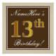 Poster Elégant, Brown, Faux Gold 13ème anniversaire + Nom