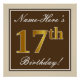 Poster Elégant, Brown, Faux Gold 17ème anniversaire + Nom