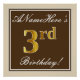 Poster Elégant, Brown, Faux Gold 3ème anniversaire + Nom