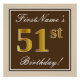 Poster Elégant, Brown, Faux Gold 51ème Anniversaire + Nom