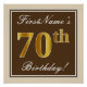 Poster Elégant, Brown, Faux Gold 70e anniversaire + Nom