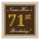 Poster Elégant, Brown, Faux Gold 71ème anniversaire + Nom