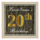 Cette affiche simple et élégante de fête d’anniversaire comporte un message personnalisé comme "20e anniversaire de prénom!" (avec le "20e" ayant un look de couleur fausse/imitation or) dans un espace rustique faux/imitation carré en bois avec une bordure simple. Le nom est dans un élégant texte de couleur blanche en forme de script, et peut être personnalisé. Une affiche de fête d'anniversaire personnalisée comme celle-ci pourrait peut-être servir de décoration à une fête organisée pour quelqu'un qui célèbre son vingtième anniversaire. [~Z0000233]