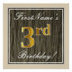 Ce design simple et élégant d’affiches de fête d’anniversaire comporte un message personnalisé comme "3e anniversaire de prénom!" (avec le "3e" à l’allure fausse/imitation dorée) dans un espace rustique faux/imitation carré en bois avec une bordure simple. Le nom est dans un élégant texte de couleur blanche en forme de script, et peut être personnalisé. Une affiche de fête d'anniversaire personnalisée comme celle-ci pourrait peut-être servir de décoration à une fête organisée pour quelqu'un qui célèbre son troisième anniversaire. [~Z0000233]
