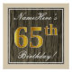 Cette affiche simple et élégante de fête d’anniversaire comporte un message personnalisé comme "NomVoici 65e anniversaire!" (avec le "65e" ayant un look de couleur fausse/imitation or) dans un espace rustique faux/imitation carré en bois avec une bordure simple. Le nom est dans un élégant texte de couleur blanche en forme de script, et peut être personnalisé. Une affiche de fête d'anniversaire personnalisée comme celle-ci pourrait peut-être servir de décoration à une fête organisée pour quelqu'un qui célèbre son soixante-cinquième anniversaire. [~Z0000233]