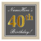 Poster Elégant, gris, Faux Gold 40e anniversaire + Nom