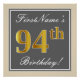 Poster Elégant, gris, Faux Gold 94ème anniversaire + Nom
