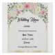Carte de menu de luxe mariage floral aquarelle. Ce design arqué présente des roses douces roses blanches et roses, des feuilles d'eucalyptus et un accent de parties scintillant dorée chic, idéal pour une mariage romantique au thème du jardin. La carte met en valeur un menu unique avec "Couscous marocain" et "Gâteau Orange Blossom", ce qui le rend idéal pour les mariages culturels ou de destination. Tout le texte est entièrement personnalisable.