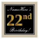 Poster Elégant, Noir, Faux Or 22ème Anniversaire + Nom
