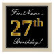 Poster Elégant, Noir, Faux Or 27ème Anniversaire + Nom