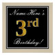Poster Elégant, Noir, Faux Or 3ème Anniversaire + Nom