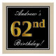 Poster Elégant, Noir, Faux Or 62ème Anniversaire + Nom