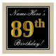 Poster Elégant, Noir, Faux Or 89ème Anniversaire + Nom