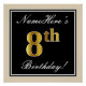 Cette affiche simple et élégante de fête d’anniversaire comporte un message personnalisé comme "NomVoici le 8e anniversaire!" (avec le "8e" ayant un look de couleur fausse/imitation or) dans une zone de couleur carré de noir avec un contour de bordure simple. Le nom est dans un élégant texte blanc de couleur script, et peut être customisé. Une affiche de fête d'anniversaire personnalisée comme celle-ci pourrait peut-être servir de décoration à une fête organisée pour quelqu'un qui célèbre son huitième anniversaire. [~Z0000236]
