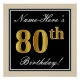 Poster Elégant, Noir, Or Imitation 80e Anniversaire + Nom