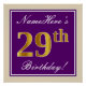 Poster Elégant, pourpre, Faux Gold 29e anniversaire + Nom