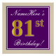 Poster Elégant, pourpre, Faux Gold 81e anniversaire + Nom