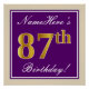 Poster Elégant, pourpre, Faux Gold 87ème anniversaire + N
