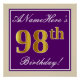 Poster Elégant, pourpre, Faux Gold 98ème anniversaire + N
