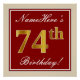 Poster Elégant, Rouge, Faux Gold 74e anniversaire; Nom pe