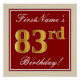 Poster Elégant, Rouge, Faux Gold 83e anniversaire; Nom pe