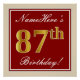 Poster Elégant, Rouge, Faux Gold 87e anniversaire; Nom pe