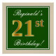 Poster Elégant, Vert, Faux Or 21ème Anniversaire + Nom