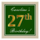 Poster Elégant, Vert, Faux Or 27ème Anniversaire + Nom