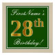Poster Elégant, Vert, Faux Or 28ème anniversaire + Nom