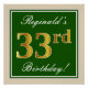 Poster Elégant, Vert, Faux Or 33ème anniversaire + Nom