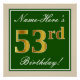Poster Elégant, Vert, Faux Or 53ème anniversaire + Nom