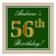 Poster Elégant, Vert, Faux Or 56ème Anniversaire + Nom